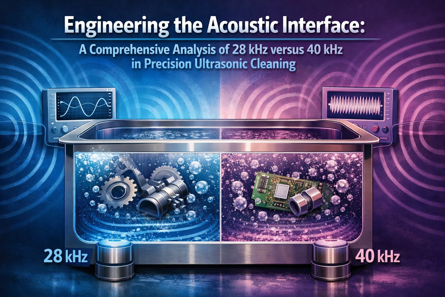 動作周波数の選択、特に堅牢な周波数の間の重要な決定 とユビキタスな - 超音波洗浄システムの有効性を決定する唯一の要素です。この選択により、気泡核生成の熱力学、音響境界層の流体力学、および洗浄される基板の構造的完全性が決まります。これは「出力」のみに基づいて決定することはできませんが、粒子の付着力、音響流速、および材料の疲労限界についての微妙な理解に基づいて決定する必要があります。