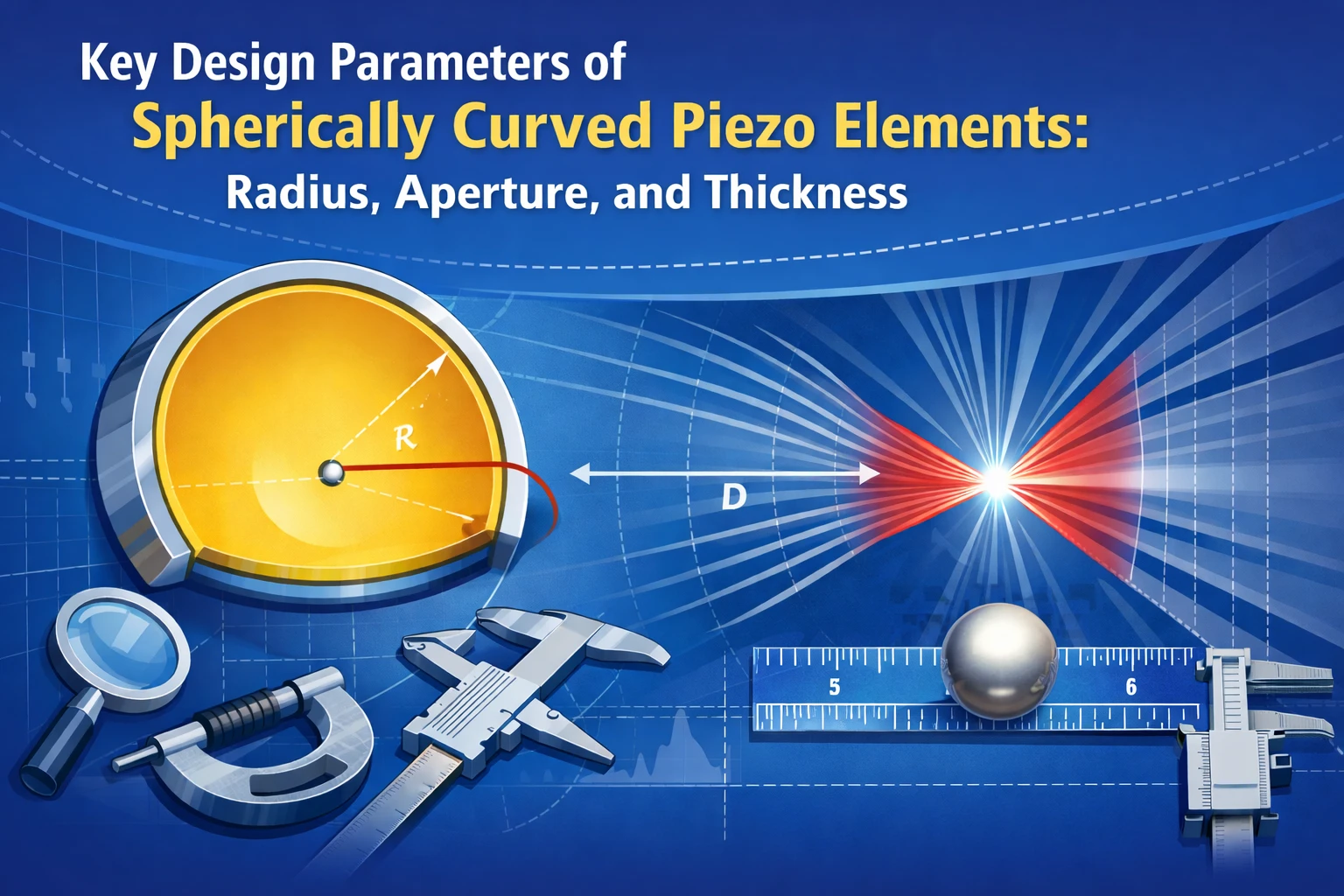 この記事は、すでに基本を知っているデザイナー向けに書かれています。 ピエゾ材料 と厚みモード共振を研究しており、球面湾曲の実用的なメンタル モデルを必要としている人 (球状キャップ) 圧電セラミックス。レシピではありません。貿易空間のマップです。